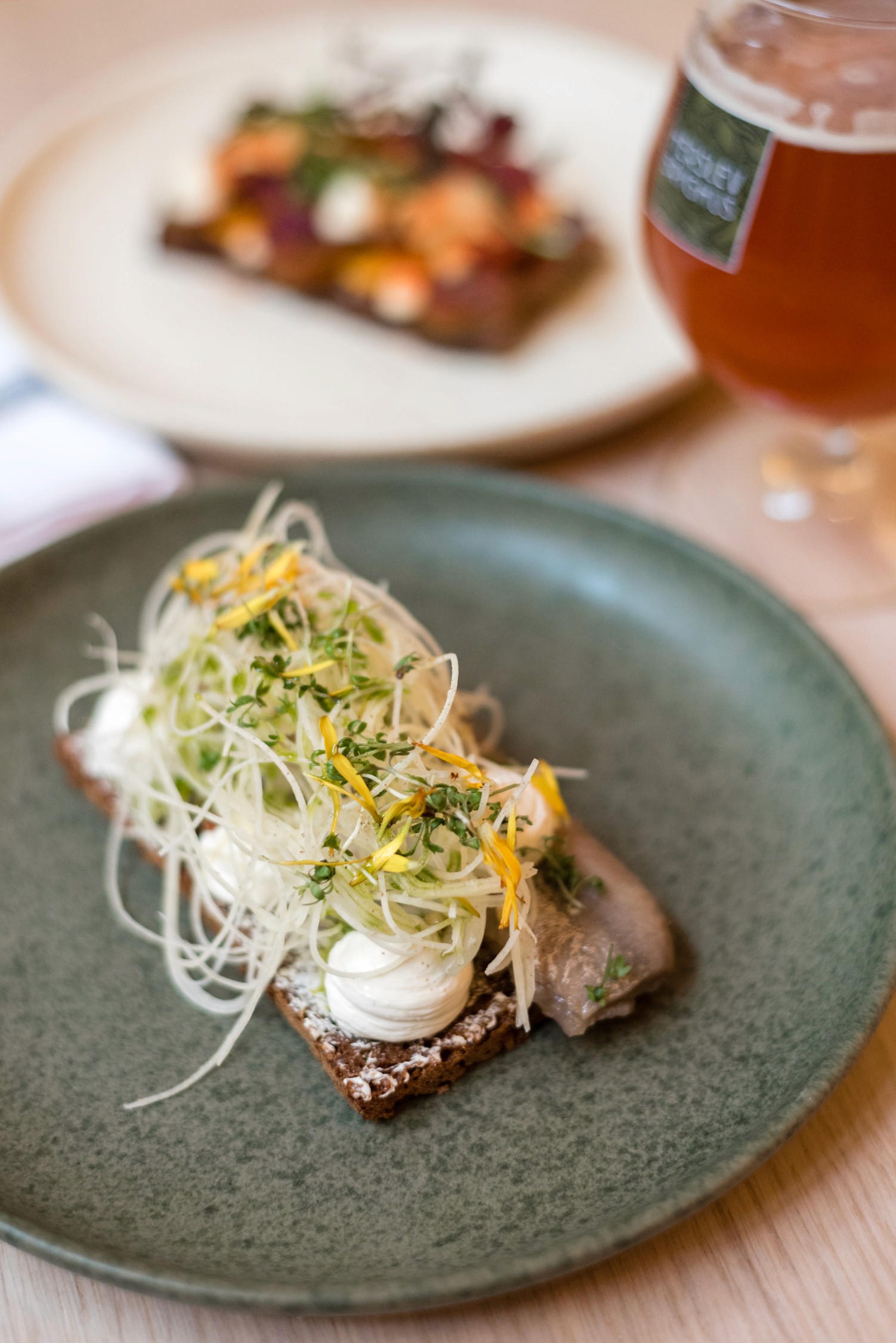 The menu changes frequently, but you can count on interesting combinations of flavors with the perfect amount of crunch, savoriness and sweet. You can also rely on the sourcing of the ingredients. The all important rye and wheat flour used to make the smørrebrød come from the restaurant’s very own mill, ensuring that it is always fresh and made exactly to Adam’s specifications...this is a man who makes his own soap, so of course he takes control of the making of Aamanns’ main attraction. Most produce is locally sourced, with salmon imported from Iceland, and the herring from the North Atlantic and marinated for 6 - 12 months.