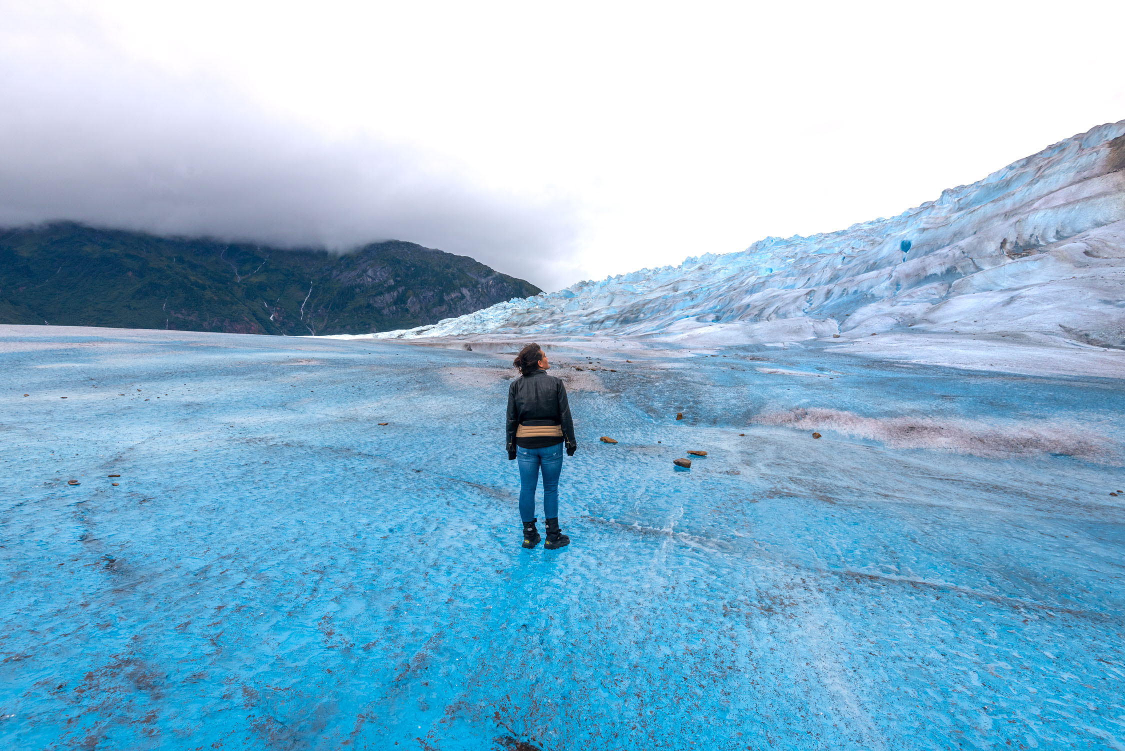 Alaska’s capital city is only accessible by air or sea. While in Juneau, we took a helicopter tour that landed on Mendenhall Glacier. Flying above the glacier was full of breathtaking scenery and nature. But to be honest, the landing was a little lackluster. We weren’t able to roam freely, and instead had to stay in a little circle while the guides tried to entertain us.