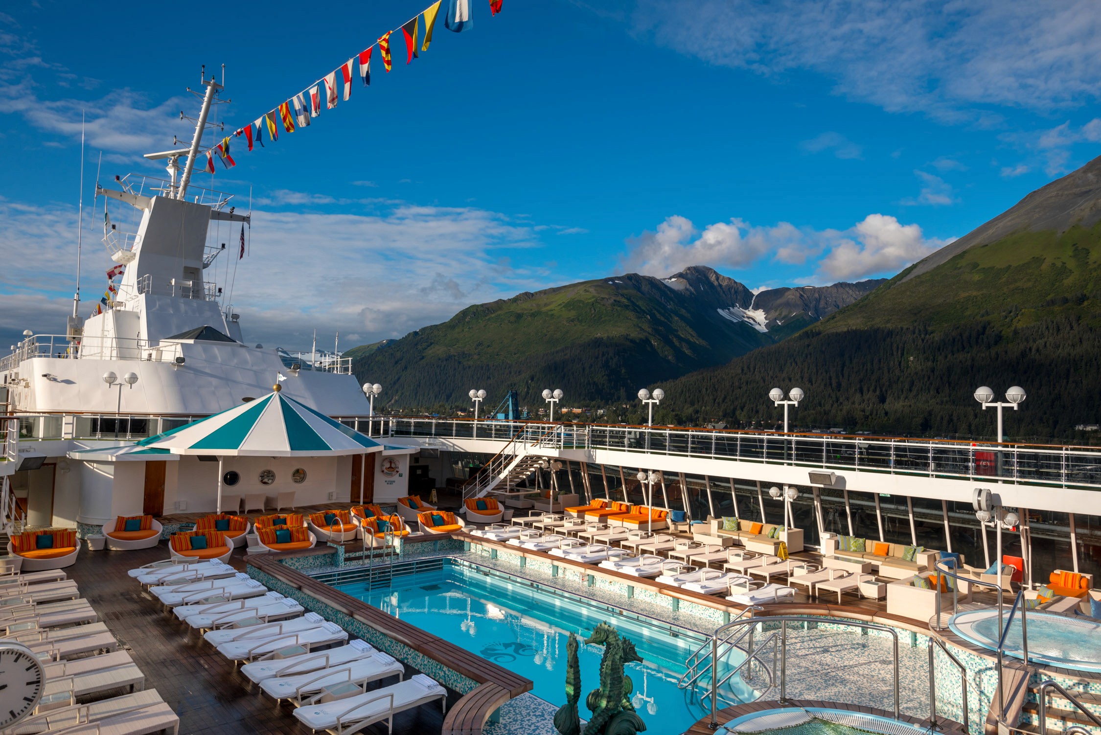 Take it from me: don’t forget to take your seasick medication! I spent the start of Day 3 seasick. Once I was feeling better, we walked around the ship and spent time by the pool. The Inside Passage is a 1,000-mile stretch of water lined with massive mountains full of wildlife.