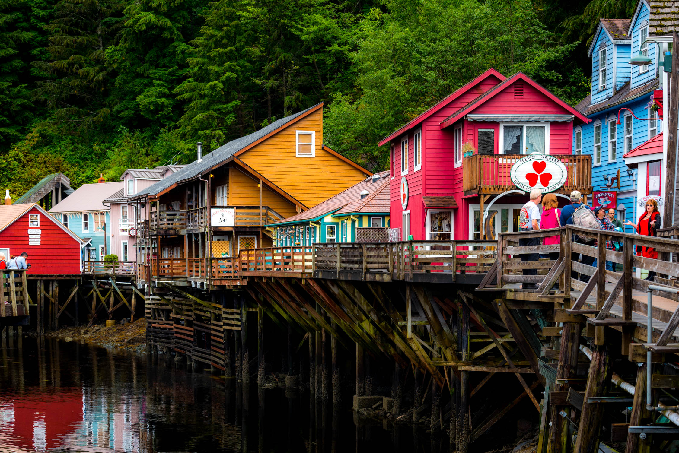 Ketchikan is Alaska’s fourth largest city. Can you believe it’s only four blocks wide, stretching over 32 miles? This salmon capital is a little rough-around-the-edges, but with plenty of character to offer. You won’t have to venture far to see the iconic fish swimming upstream to spawn. While we were in Ketchikan, we enjoyed the seaplane over the Misty Fjords National Monument excursion. It ended up being one of my favorite parts of the trip! Flying through the Alaskan mountains, surrounded by impeccable and flourishing nature, was an incredible opportunity I’ll never forget! We saw so many waterfalls and nature so beautiful it felt staged — I might have gotten a little teary-eyed.