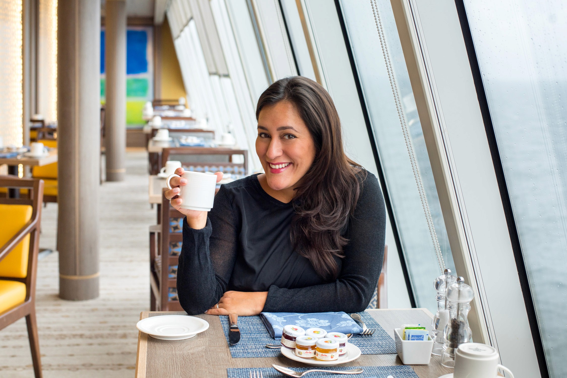 My favorite part about The Crystal Serenity was the common spaces sprinkled throughout the ship. I loved the Crystal Cove, a public space located in the atrium at the bow of the ship. With floor to ceiling windows, it was the perfect nook for eyeing the landscape and sipping tea or cocktails. The sound of live music suspended in the air while passengers chatted contentedly. It was totally our happy place!