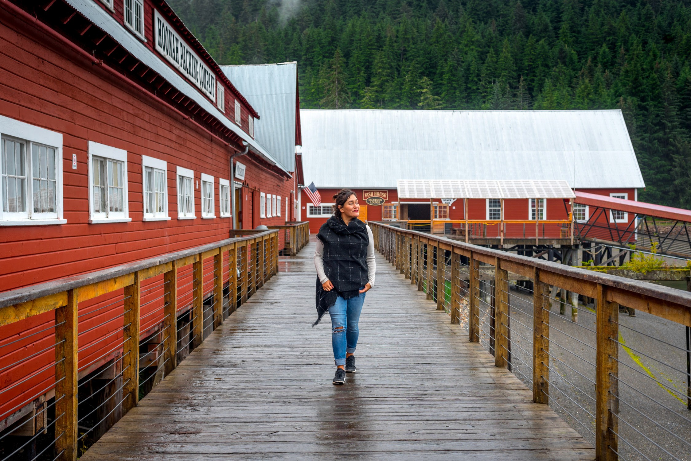 Hoonah was given its name by the Tlingit indigenous people, meaning, “where the north wind doesn’t blow.” And to me, Hoonah pays tribute to all that is Alaska: indigenous people, a history carved by outsiders, freely roaming bald eagles, and bears fishing knee-high in rushing streams. While in Hoonah, we went on a bear-searching tour and spotted two! It was gorgeous and such a blast.