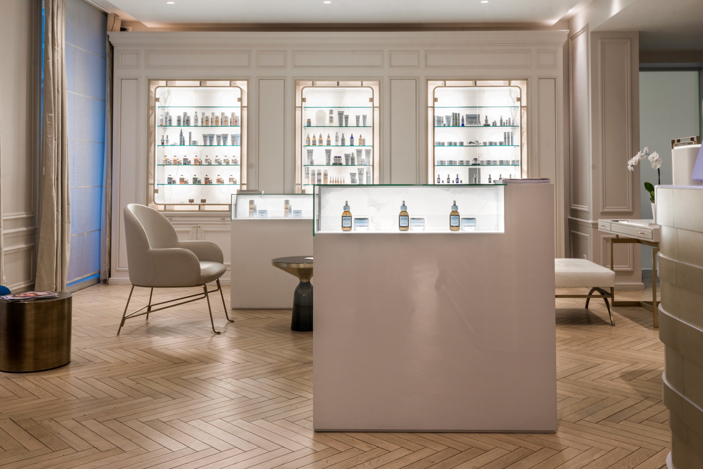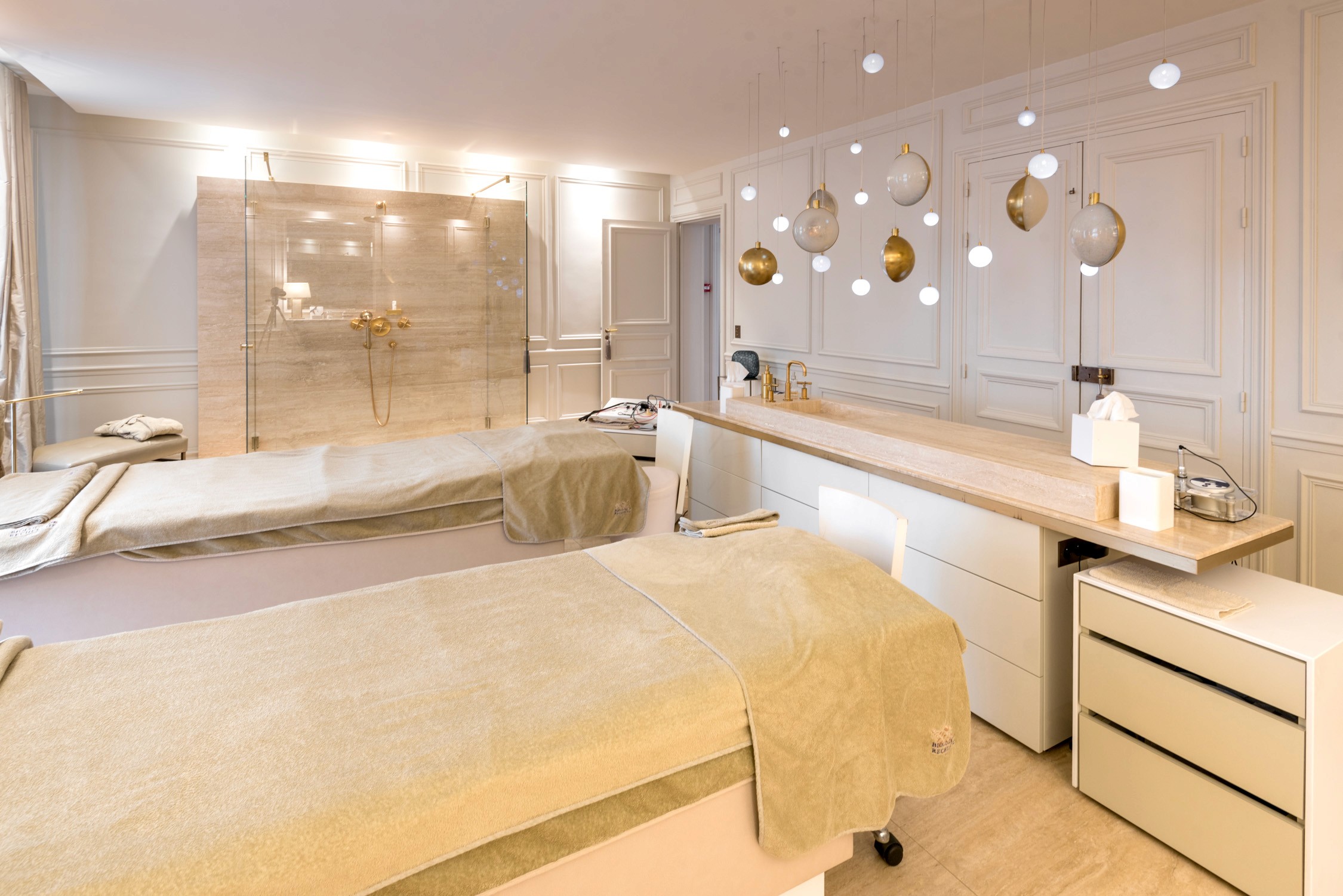 Once inside, you can’t help but be impressed by the decoration. Everywhere you look you encounter wood paneled walls and marble counters. Everything, from the furniture to the lighting, is a calm shade of gold or cream. The Biologique Recherche brand has been around for almost forty years, and they have been carrying out treatments at the Ambassade for the last twenty-three of them.