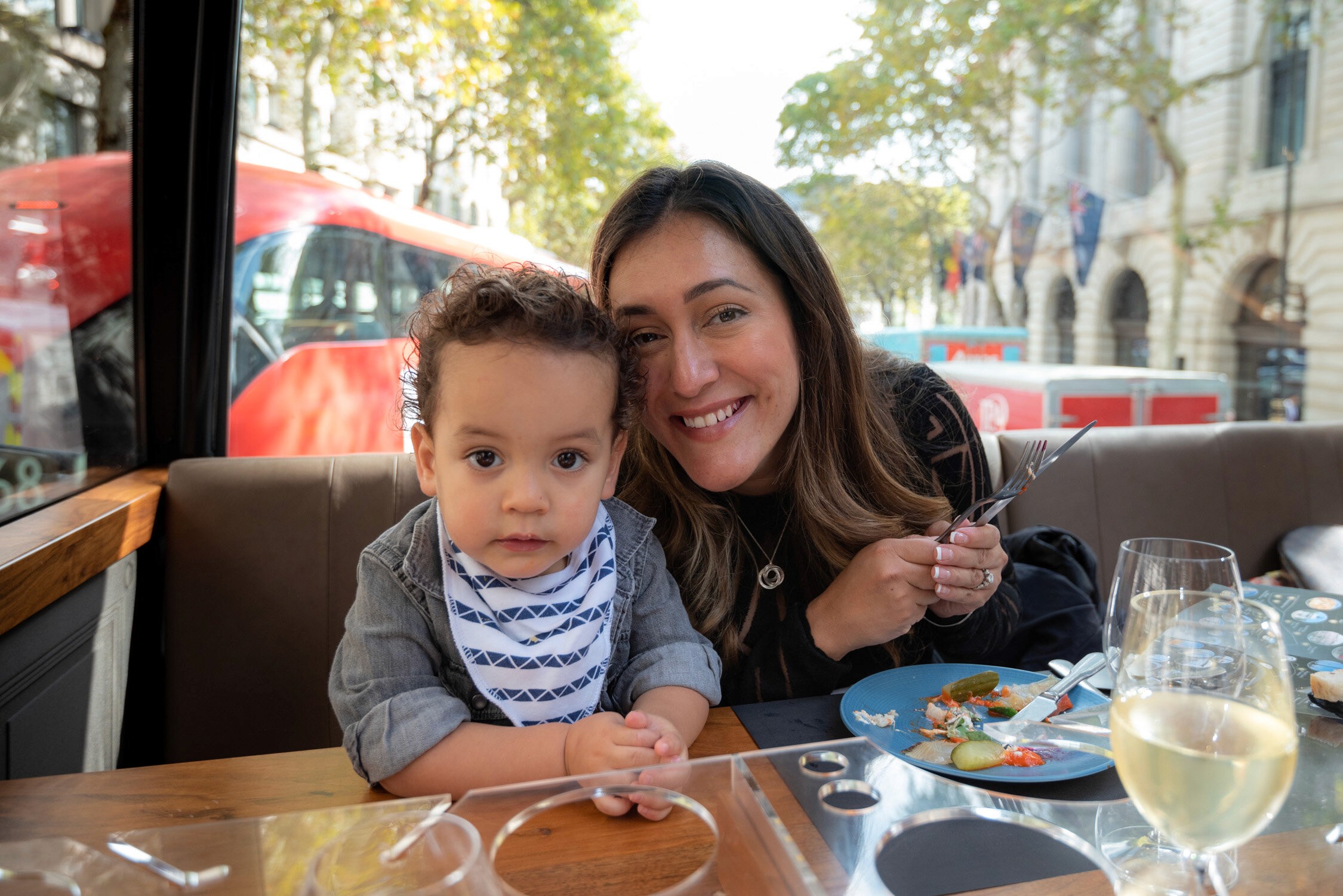 London is a vibrant, exciting city and everytime Chris and I pay it a visit we have a uniquely new experience. On our most recent visit, Chris, Axel and I were traveling with my Mom, who was visiting London for the first time and wanted to soak in the sights. But...when you’re traveling with a toddler, sightseeing can get complicated - how can we get from one attraction to the other, while carrying a tired toddler? And, as we were in London for only a few days, how could we best maximize our time? Instagram had answers. While looking at how best to explore the city, I did a bit of Instagram stalking and discovered Bustronome, a unique, exciting and convenient way to explore the city. As its name suggests, Bustronome combines a bus which trundles to London’s most famous sites, and a gastronomic experience. Established in 2014, Bustronome is a double decker bus that has been designed to offer guests the best of London - in just under three hours. It has a glass encased roof that allows you to enjoy the views and an on-board kitchen creating exquisite English and French dishes. As the bus makes its way through London roads, guests can make use of Bustronome’s audio guides to give them more information about popular sights and monuments. It’s basically a really chic tour bus, that wines and dines you all around London!