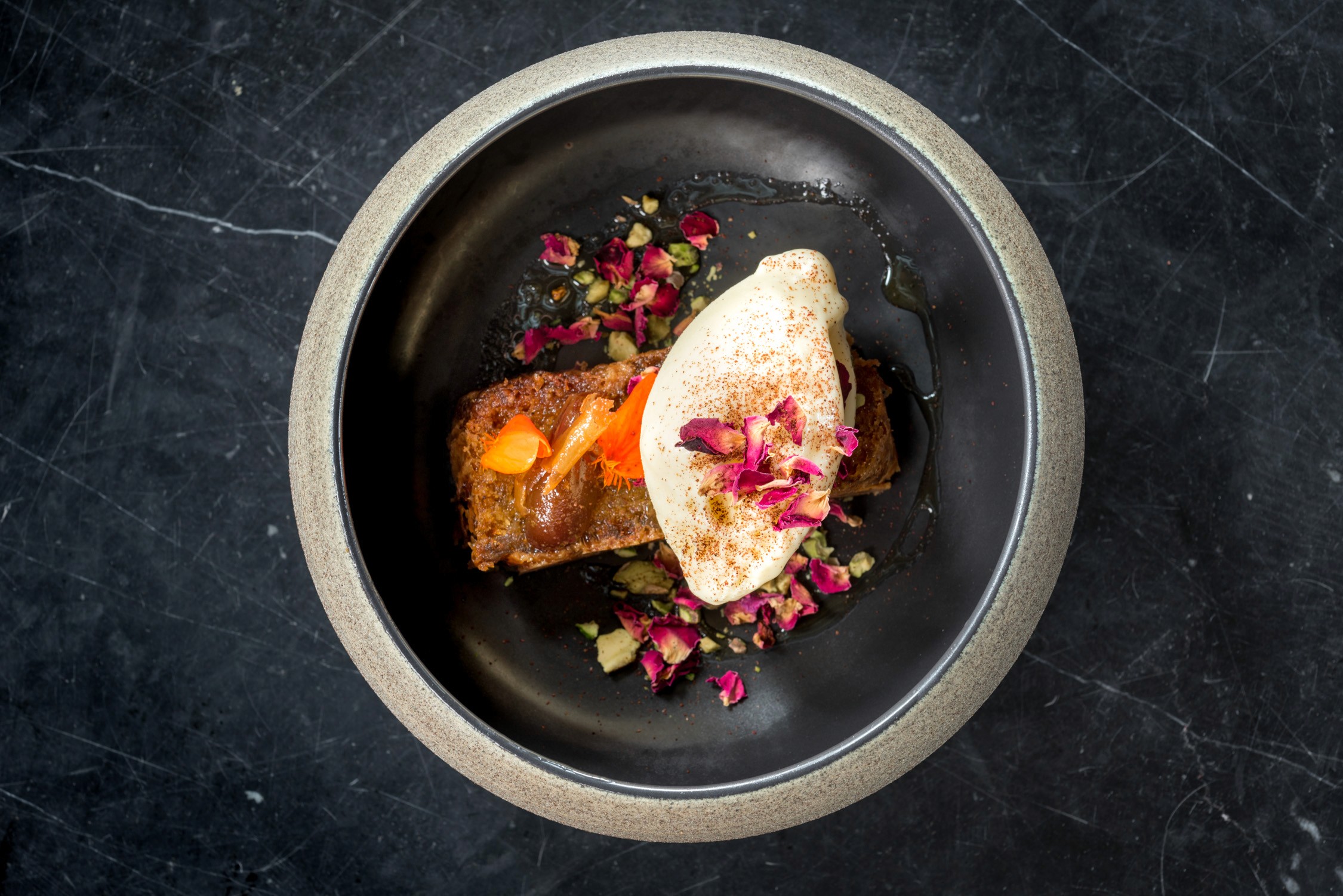 “The menu is international with dishes ranging from housemade olive gnocchi covered with nasturtium leaf pesto, forest mushrooms and wild fern tips to spiced barramundi served with tomatoes, chile pickles and curried pumpkin puree