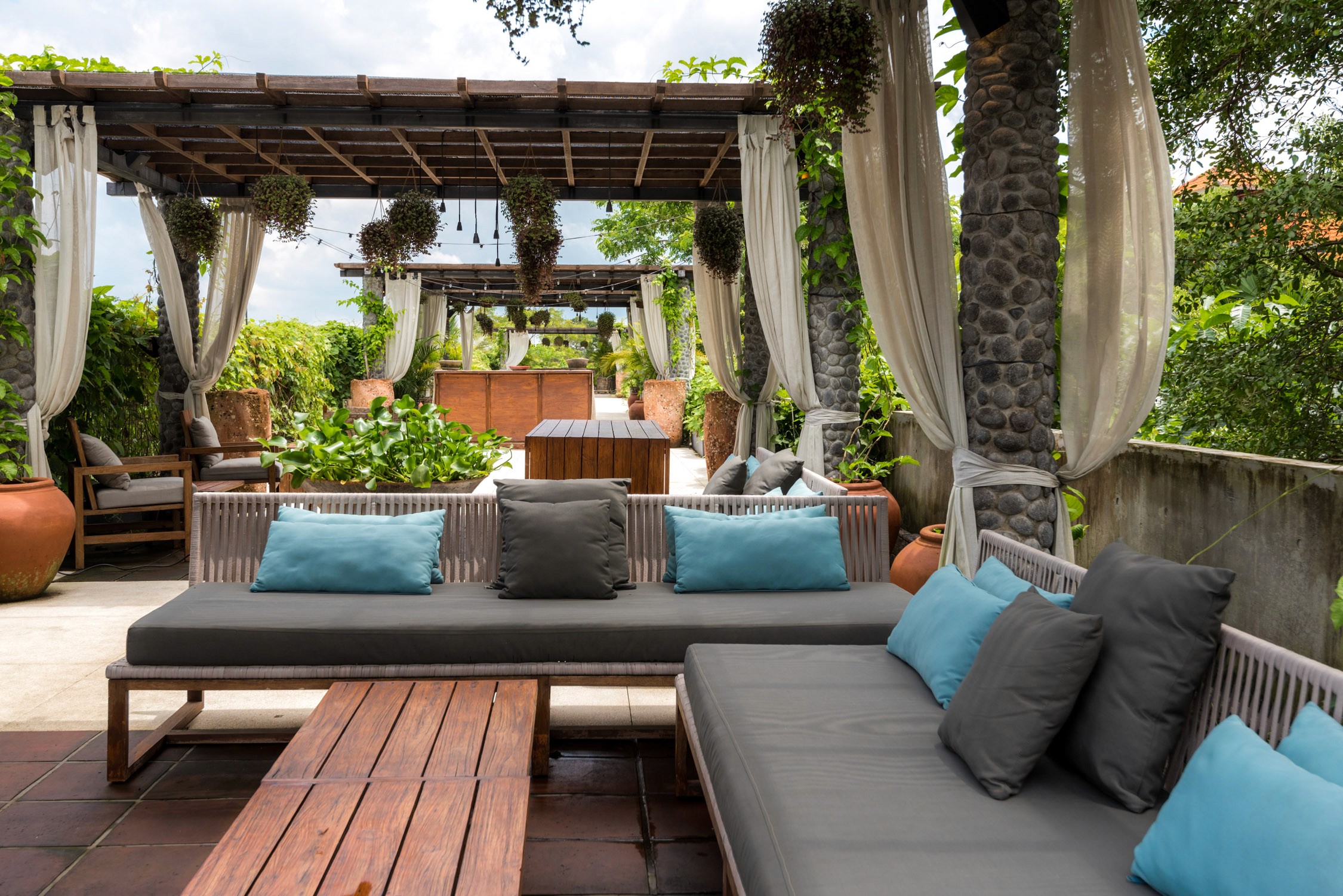 Copper Kitchen and Bar is located in a small air conditioned room (a welcome reprieve on hot days) and opens up to a large outdoor terrace further looking onto the views of the Jungle. Comfortable couches and little nooks fill the space keeping the vibe casual and intimate. On the opposite side is another long outdoor space where the restaurant portion of Copper can be found.