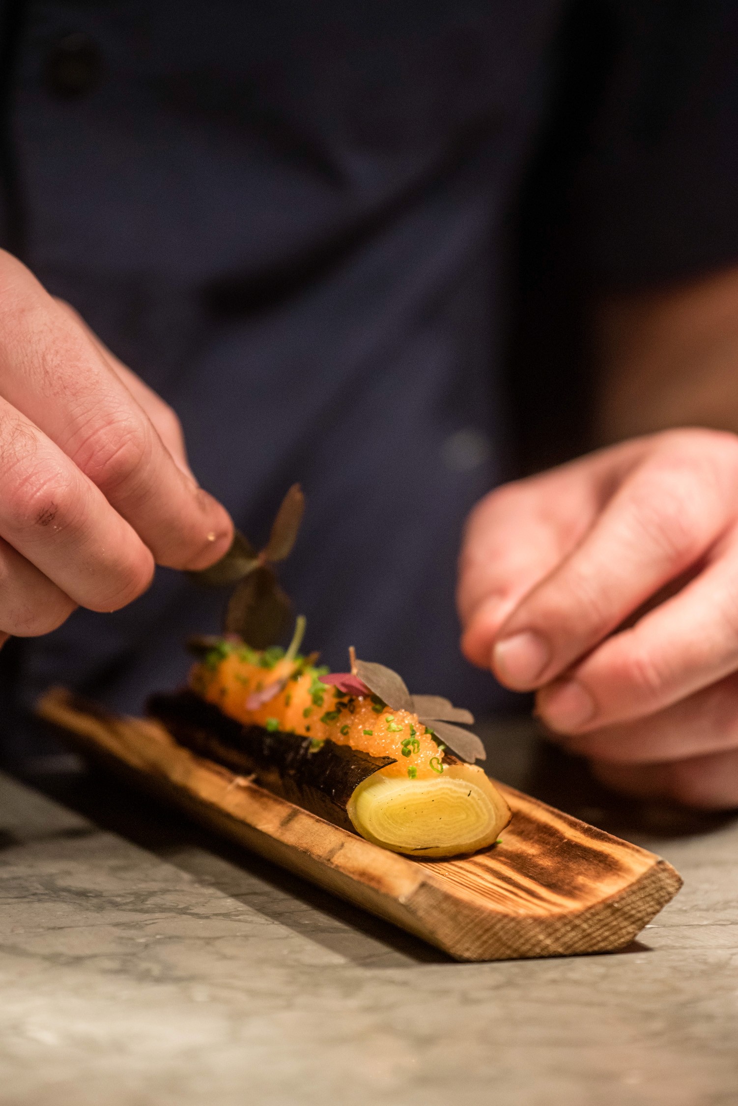 This contrast of primal and romance is an expression of owner Niklas Ekstedt’s life. Today he is a celebrity chef living in Sweden’s busy and cosmopolitan capital, but as a child he lived in the forests of Jämtland in the Arctic north of the country. This is a place where snow-capped trees outnumber humans, and the indigenous Sami people live in a way not too far removed from that of the cavemen mentioned earlier. Having been taught to look outwards while training to be a chef, Niklas eventually decided to fuse the knowledge and trends he saw elsewhere with the spirit of the place he was from