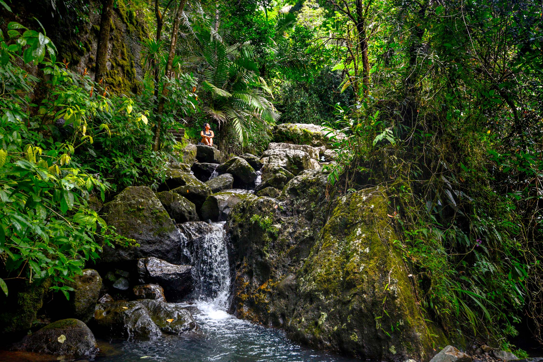 During our stay in colorful San Juan, Puerto Rico, we wanted to switch up the pace a little. Of course, Puerto Rico is full of gorgeous beaches and great relaxing opportunities, but it also has a wild side with lots exotic nature to offer — El Yunque Rainforest. Instead of eating and lounging by the beach (for half a day at least), we set off into the jungle to hike around and play in waterfalls! Getting outside of civilization for a breath of fresh air — albeit humid and jungle air — made our entire experience of the island.