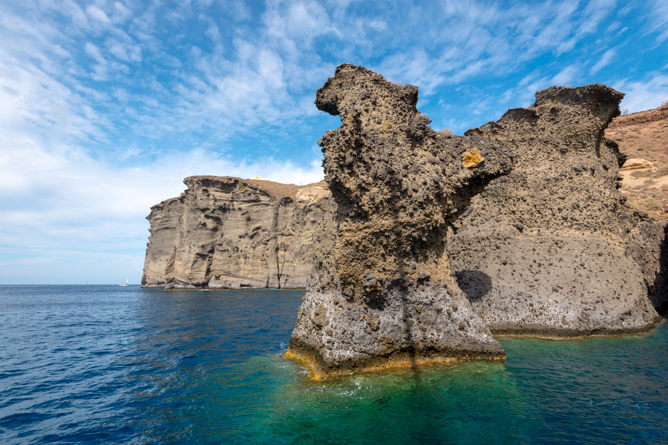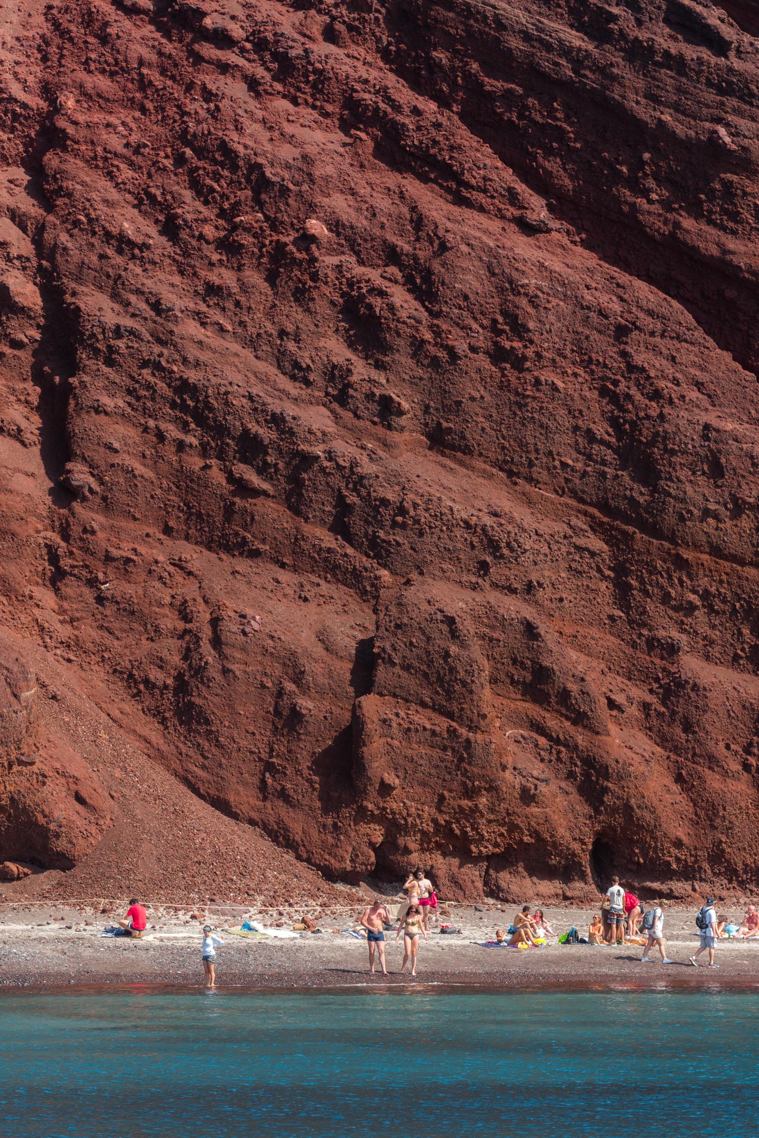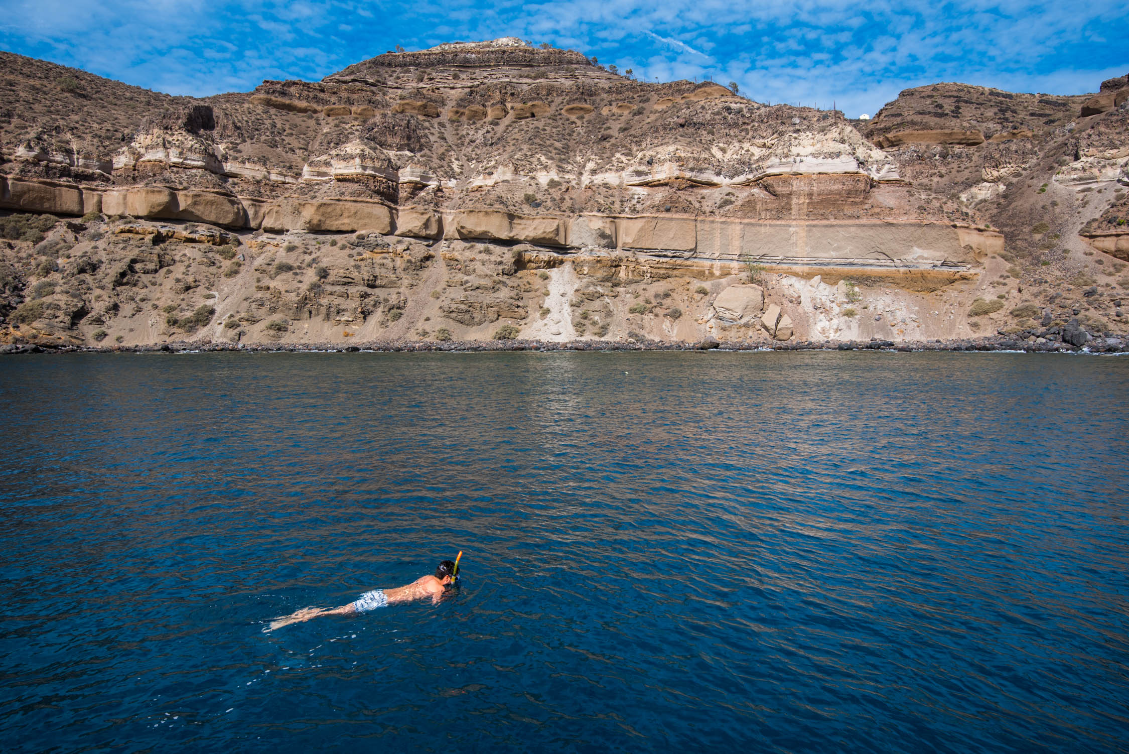 We spent the next few hours sailing leisurely around the island, and stopping in several places along the way. Santorini was formed by a volcano and so the landscape is rocky and the cliffs are painted with beautiful shades of red and brown. This creates a striking picture when contrasted with the deep blue of the sea, and the little white villages which dot the island