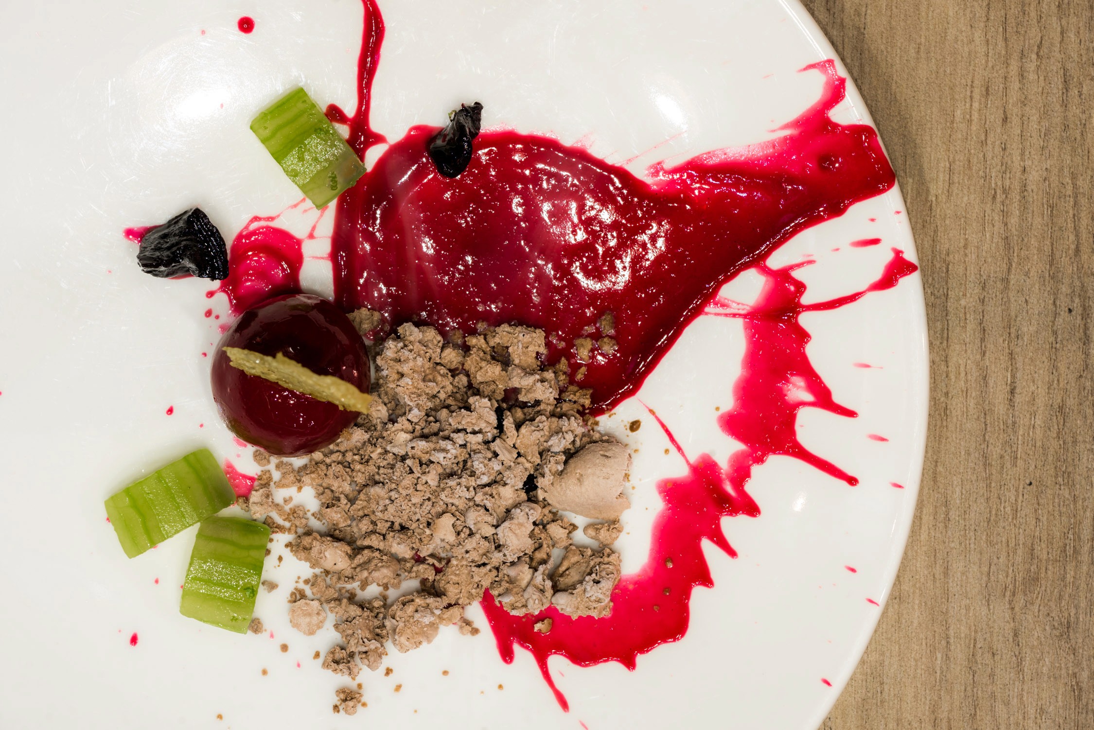 Another amazing dish was dessert, which was the same on both menus. It was built around beets and cucumbers. The beets had a dried cabbage leaf on top, and were naturally very sweet. The cucumbers were marinated in elderflower and lime, which gave them a wonderfully complex combination of flavors. It was all served with Laima Chocolate (from a local Latvian chocolate factory), and a mousse which was frozen with liquid nitrogen. It all came together perfectly, and it really was an unexpected amazing dessert, made from an unlikely set of ingredients.