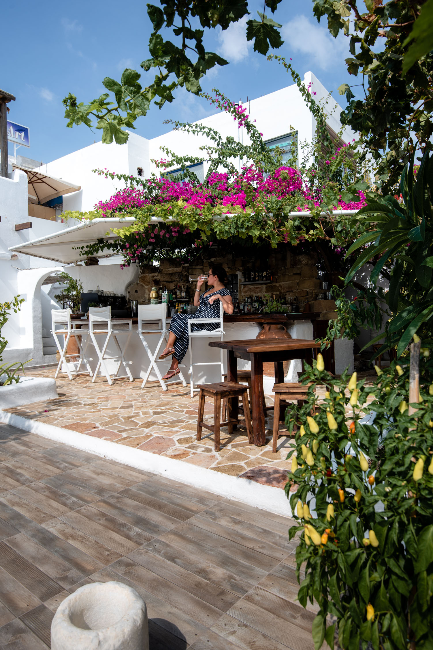We’ve eaten in a lot of gorgeous restaurants around the world, but I have to admit that Mourella, located in Kiotari village, is one of the most scenic. Out on the terrace, gorgeous trees create an ambiance almost as fresh and natural as the food itself. What makes all the difference at Mourella is that the ingredients are hand-picked and sourced directly from the owner’s garden, which makes for a fresh taste you won’t find anywhere else.