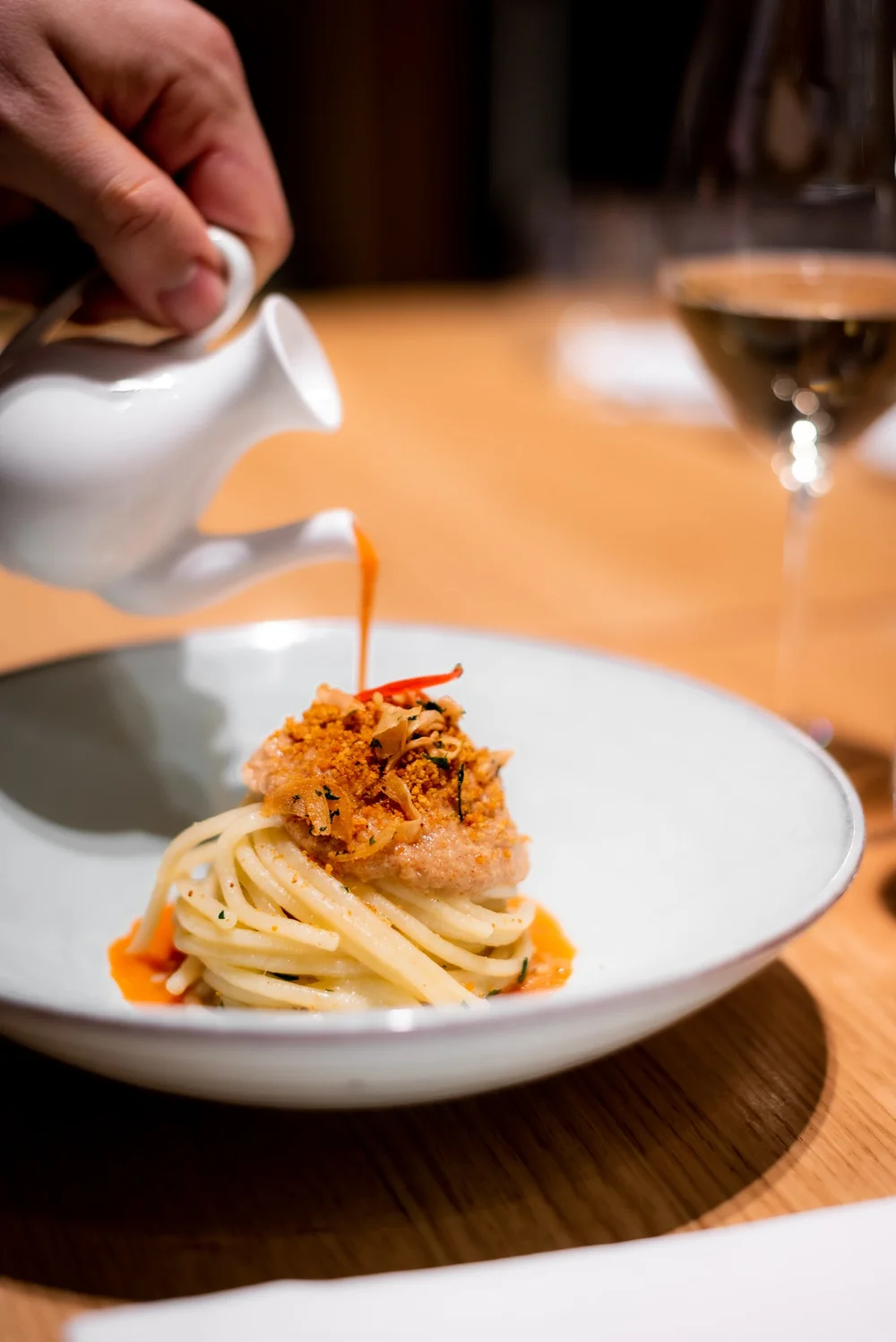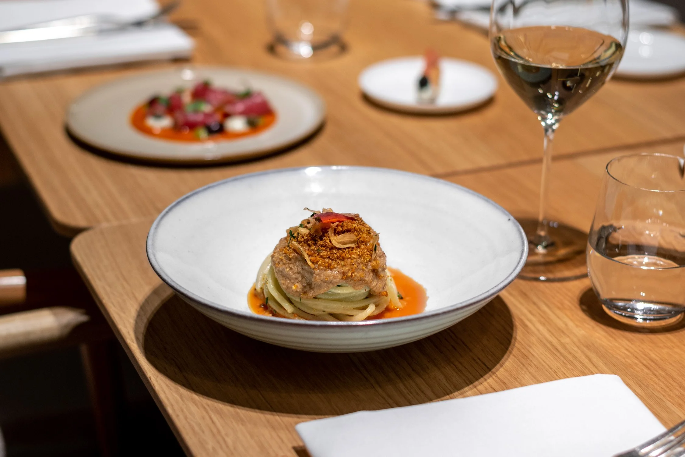 As expected, the restaurants at the Ritz were amazing. One of our favorites restaurants was Pastamara. Like the name suggests, it’s a Sicilian restaurant that serves up everything from Italian street food classics to decadent seafood and pasta dishes. I’d recommend starting with a few arancini, seared tuna and the Pane e Panelle, which is a fried chickpea sandwich. For the main course, you’ve got to try the Pasta Taratata. It’s a spaghetti dish with bottarga sauce- which is made from salted and cured fish roe. The lemon sorbet is the perfect palette cleanser after a rich meal, so ask if it’s available!