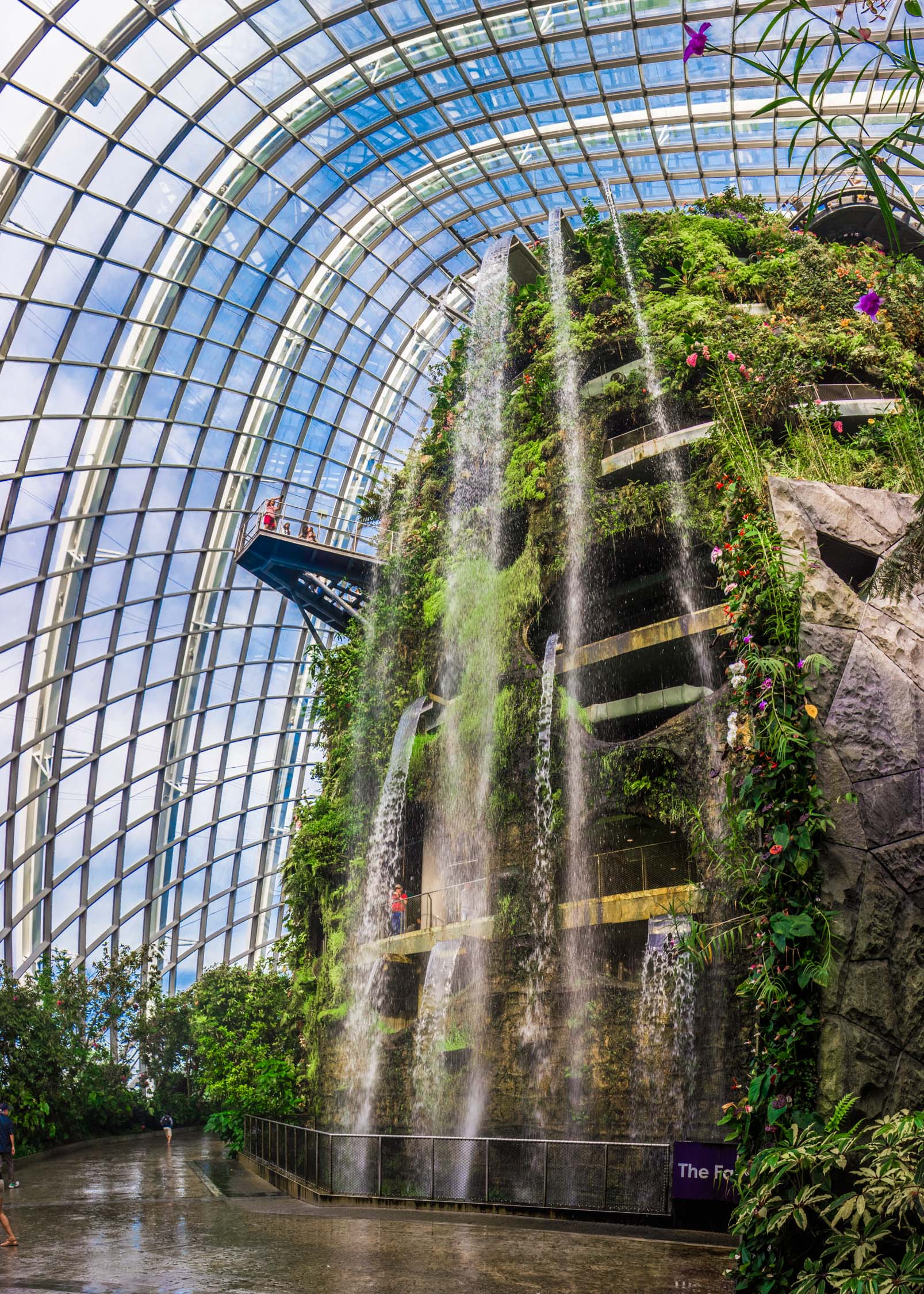 With sweltering temperatures outside, we didn’t have to think twice about entering the cold and tropical dome of Cloud Mountain. As soon as we entered we were hit with the cold mist surrounding the 35 meter tall mountain, that was completely covered in lush vegetation. As far up as I could see, were beautiful orchids and exotic plants, with the tallest indoor waterfall in the world, cascading down. It was beautiful!