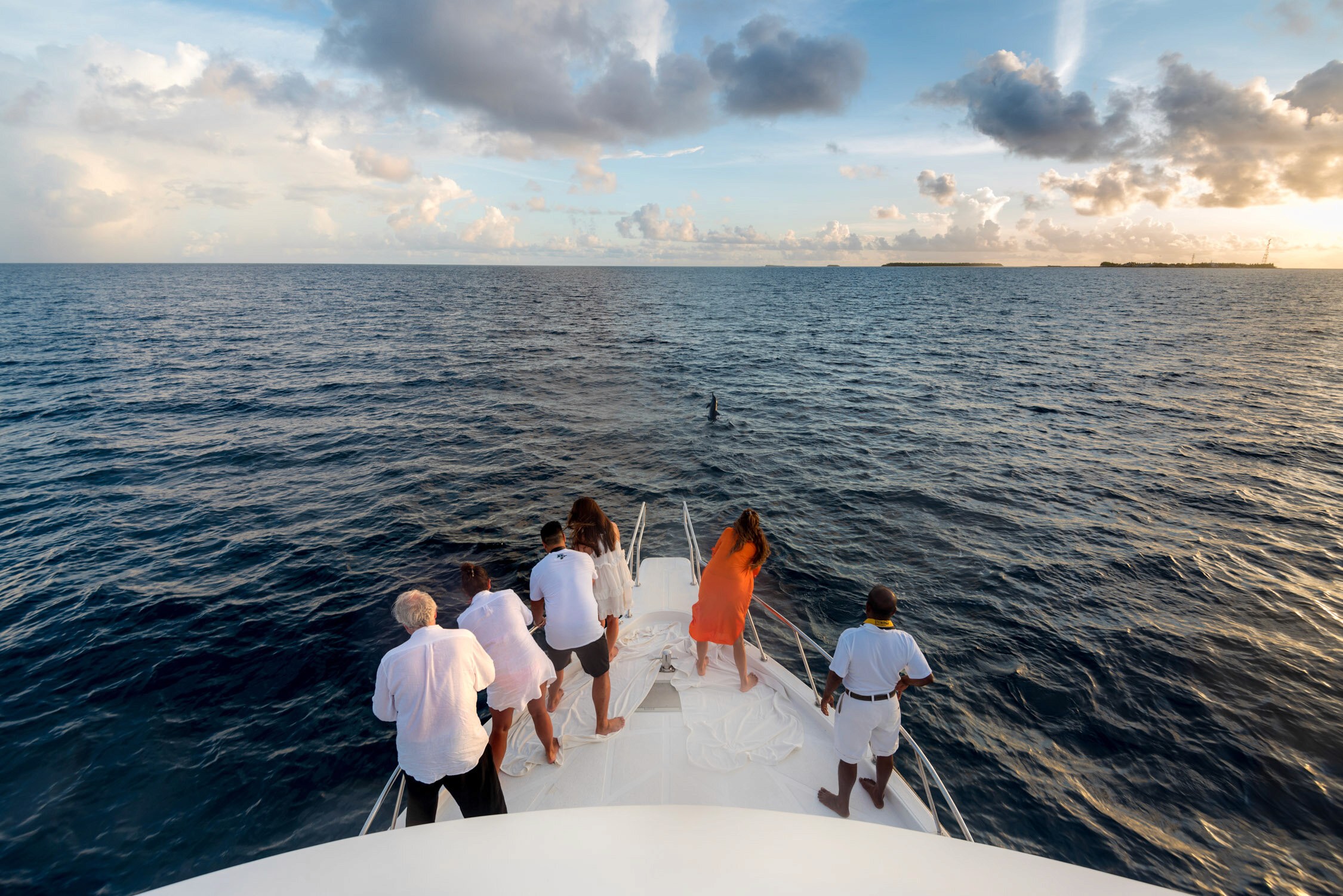 One evening at sunset we went out looking for dolphins, and it really was as wondrous as people say. Dozens of the cute little dolphins were dancing around our boat. It was great to see them in their natural habitat, and although it appeared that they were performing for us, it was the dolphins in charge of the event, and they were there because of their natural curiosity rather than being coerced. It was just another of Soneva’s sustainable experiences, and it was probably the most memorable of the stay.