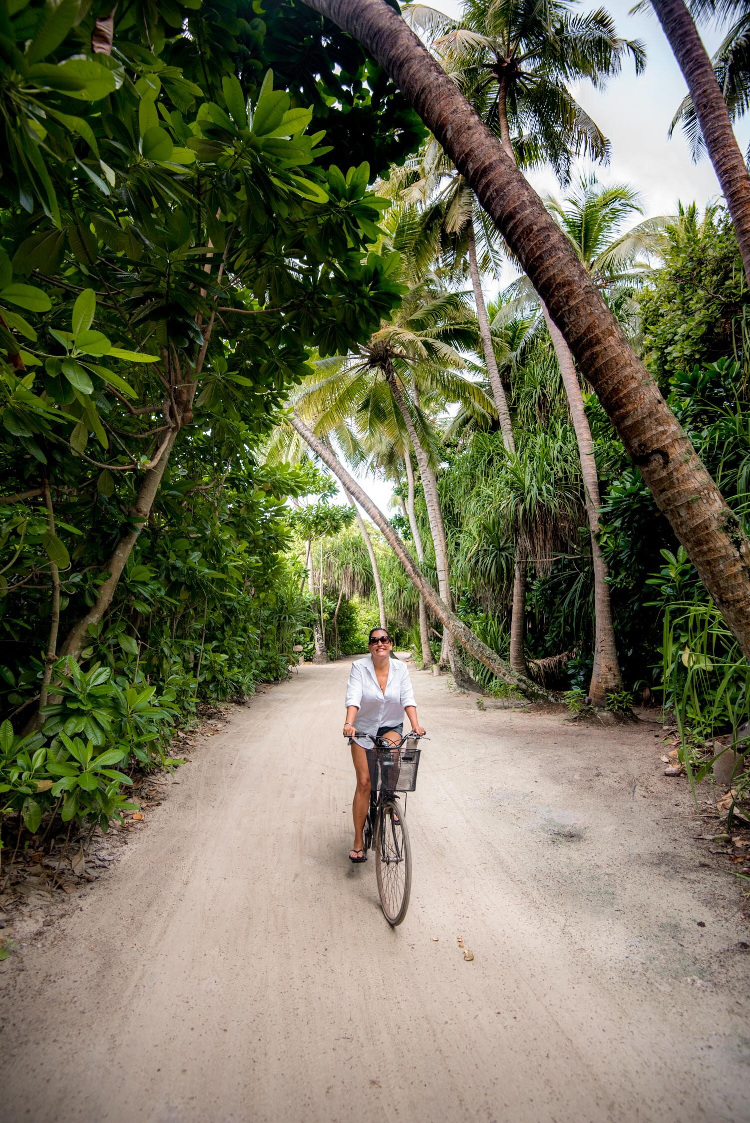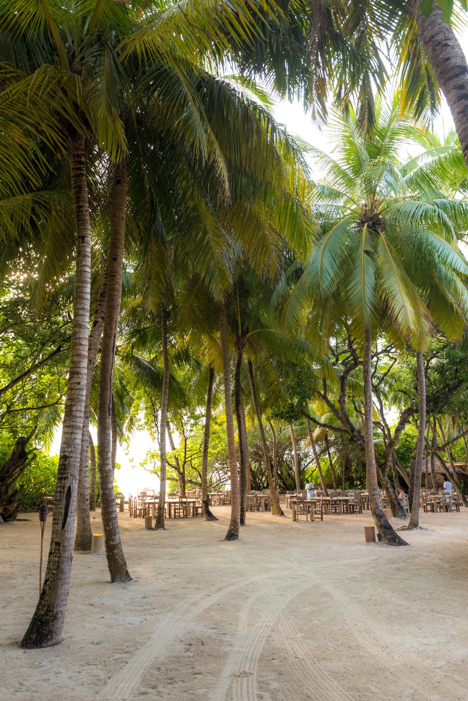 The hotel’s villas are dotted around the edge of the island, while the interior is largely left as nature made it. To get to our villa we drove through the palm trees on one of the white sand roads that allow you to travel throughout the island. It was on the way that we started to get a sense of how big the island is.