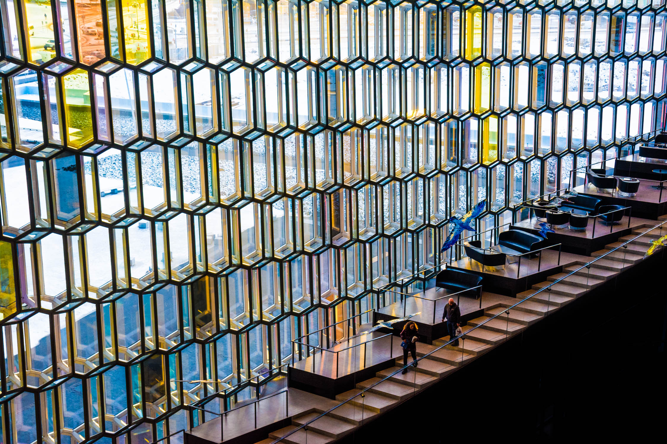 But this building isn't just about beauty, it's also highly functional. The Harpa is home to the Iceland Symphony Orchestra, so it's not uncommon to see performers wander the halls, and often times even preparing for a performance! The Harpa Concert Hall is also a great place to hear live music, as It has been outfitted with the best in musical equipment and technology, making concerts a pulsating experience.