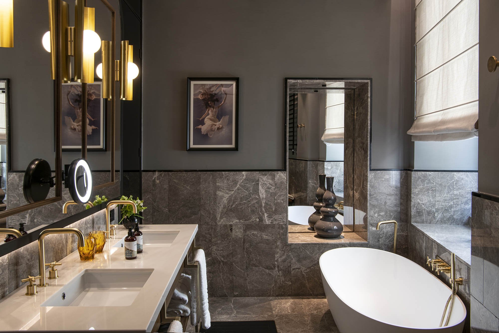 The original high ceilings and a magnificent marble staircase have been meticulously preserved, adding to the hotel's understated elegance. The fusion of cozy ambiance and lavish finishings creates a timeless classic vibe that is effortlessly impressive.