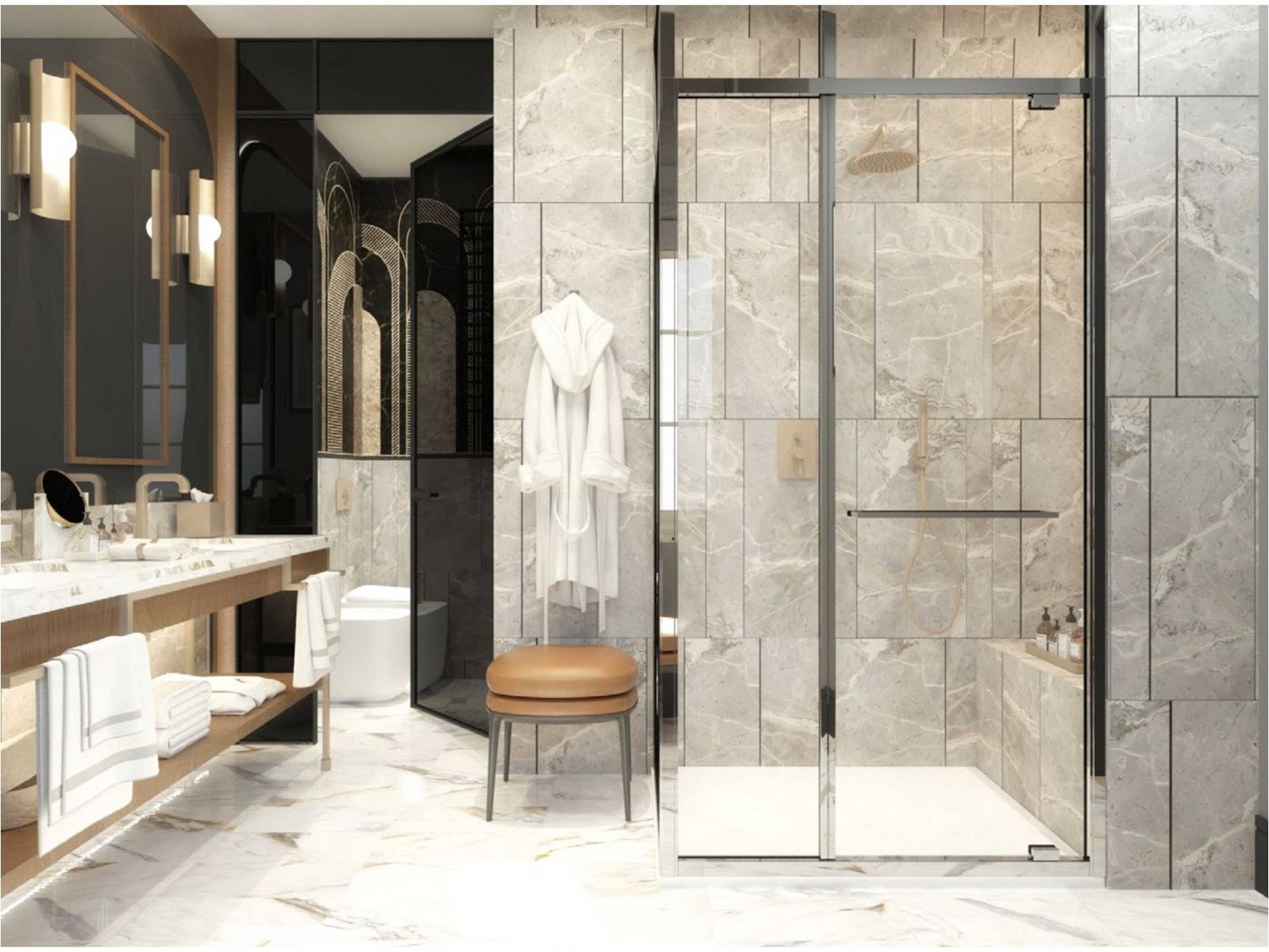 Guests will find ample space in the rooms, including walk-in closets and premium bedding for ultimate comfort. The marble bathrooms are adorned with a breathtaking large rain shower, serving as the centerpiece of the accommodations.