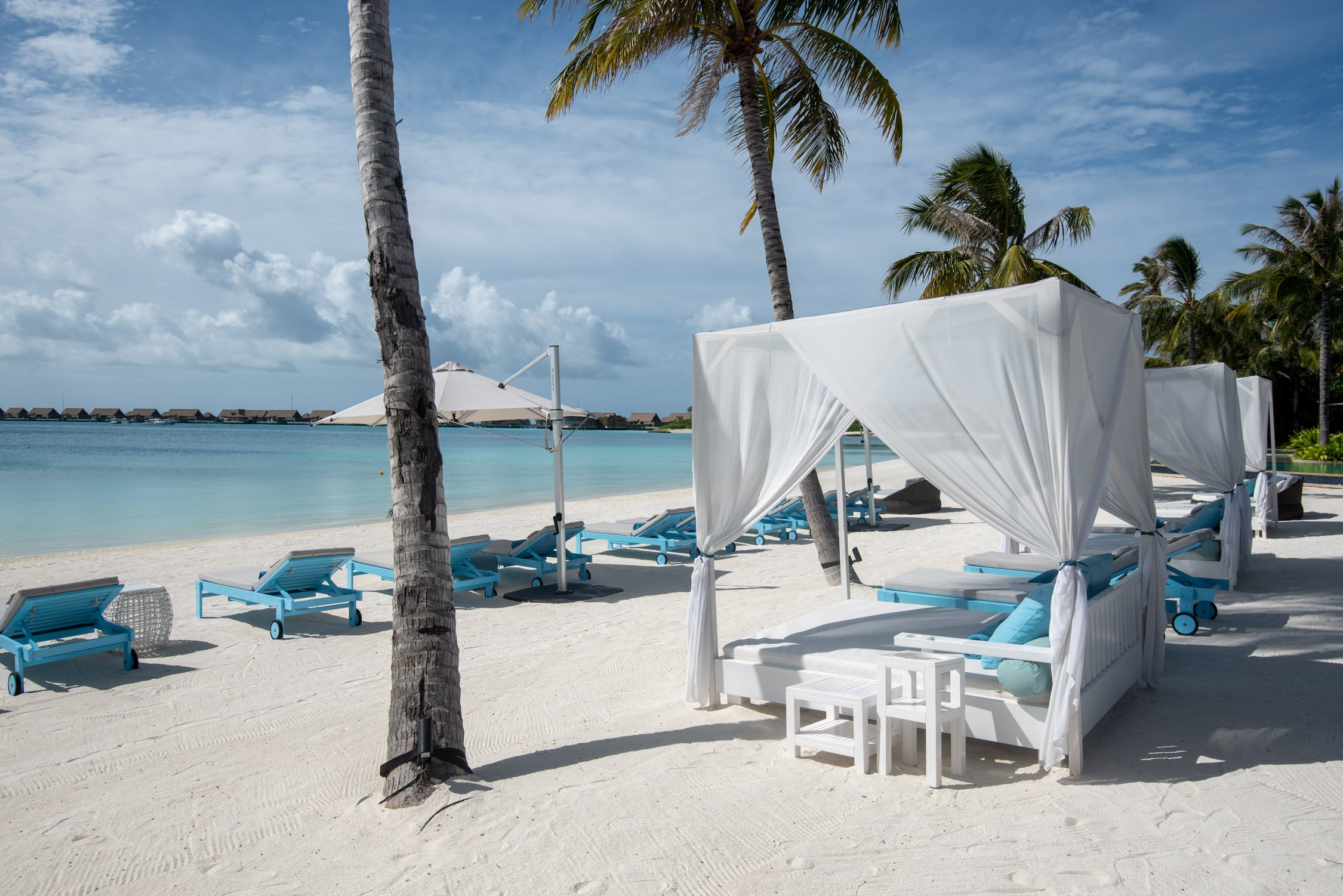 The entire design of the resort has an upscale island vibe to it, it’s barefoot luxury taken up a few notches. It’s elegant without being pretentious, and casual without being too relaxed. White, sandy beaches surround the island with plenty of common space if you want to have a beach day and be around other people. Inside the island, it’s a maze of sandy roads to help guests get to all the different areas of the property.