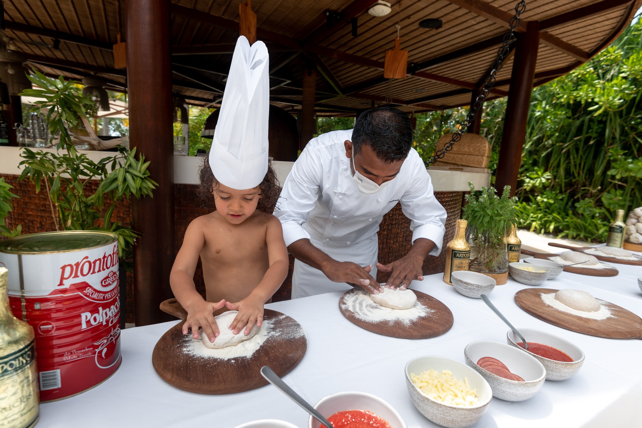 While most people think of the Maldives as a honeymoon or couples spot, this is truly a special place for kids. We got to see the island paradise through our children’s eyes, especially Axel, our 3.5-year-old. He brought magic to experiences like swimming in the pool and ocean, exploring the island together, spotting animals in the water and meeting friends in the kids’ club.