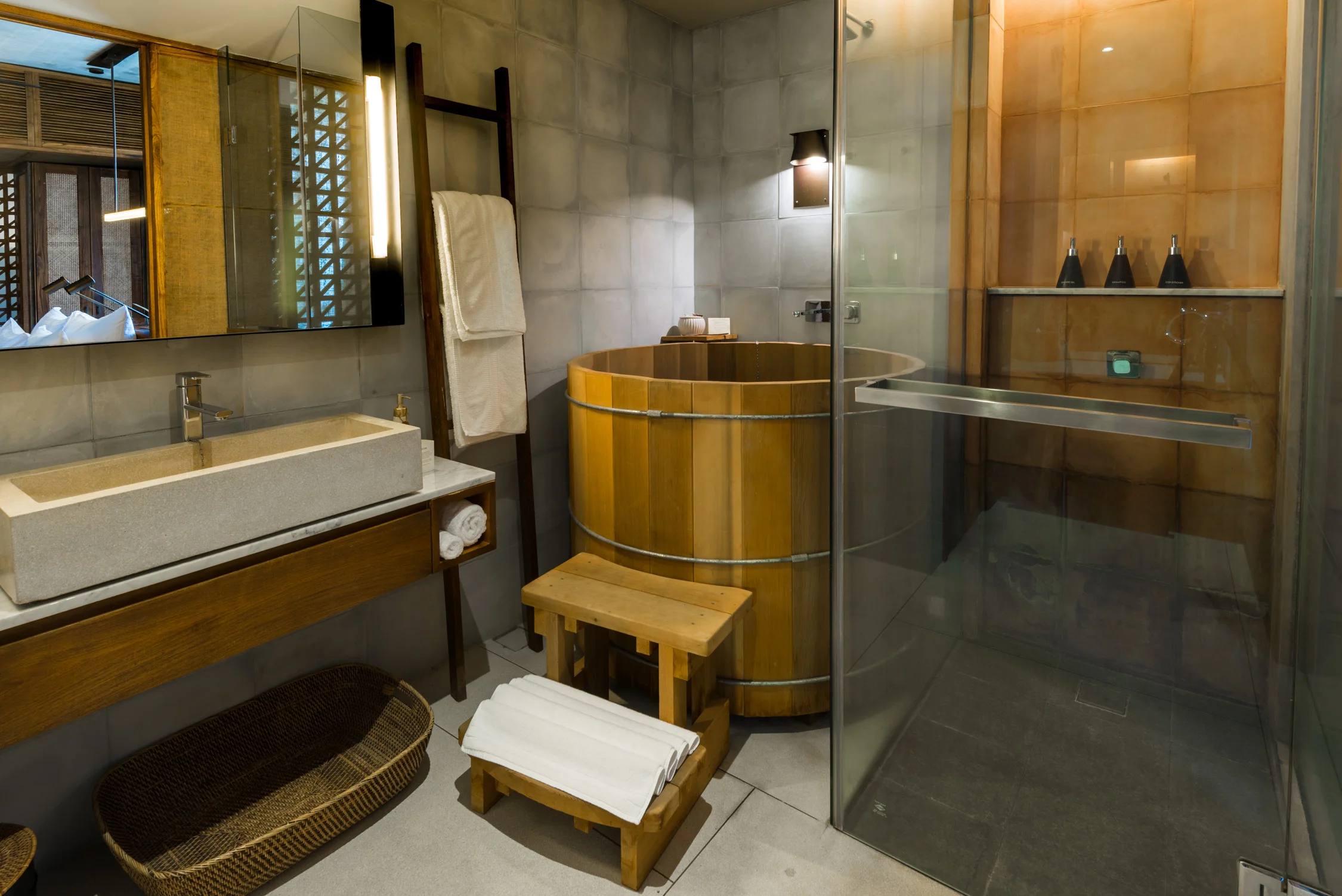 We stayed in one of the Canopy Suites, situated on the second floor of the hotel. Between the combination of style and comfort, we were completely blown away by our room. The design was full of modern touches, but also had “jungle” influences with wooden floorboards and sliding doors. It had everything we needed as well as some extra special elements, like the Japanese onsen tub in our bathroom. In the main room was a large and comfortable seating area which was perfect for relaxing or doing work. Outside, the balcony overlooked the courtyard, full of trees. If the rooftop lets you look out over the jungle, our balcony gave you the feeling of being completely immersed in it, and it was the perfect place to enjoy a morning coffee.